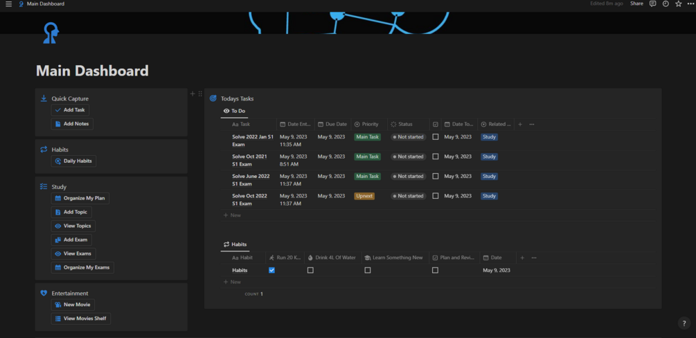 A Notion template for students could include a spaced repetition system and a habit tracker to help optimize study habits and maintain good habits outside of class. The template could include sections for scheduling study sessions, tracking assignments and deadlines, and organizing notes and resources. This customizable tool would be useful for students throughout their academic career to help them stay organized and achieve their goals.